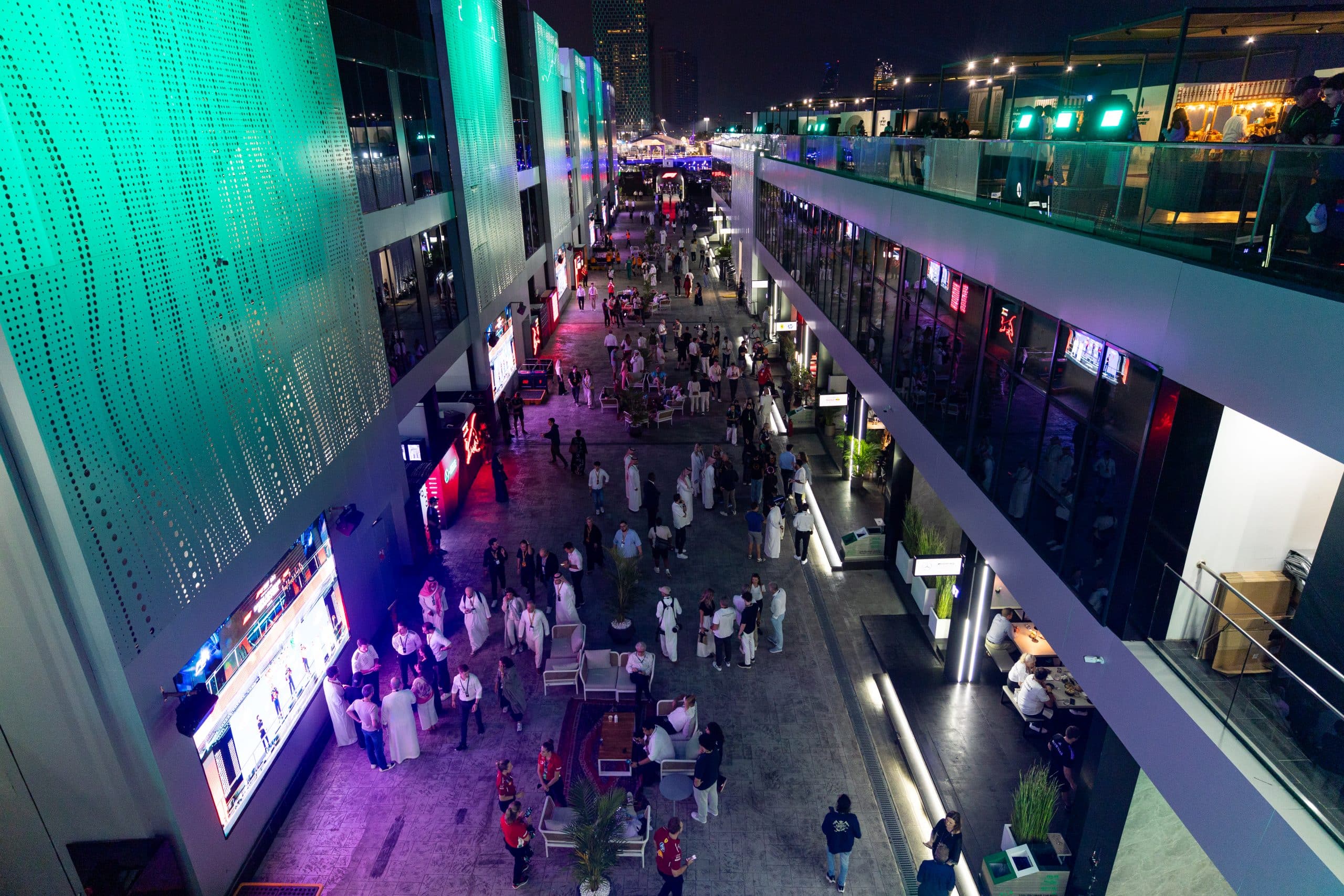 Covered, climate-controlled venue located directly above the F1® Team Garages with views of the Starting Grid and Finish Line.